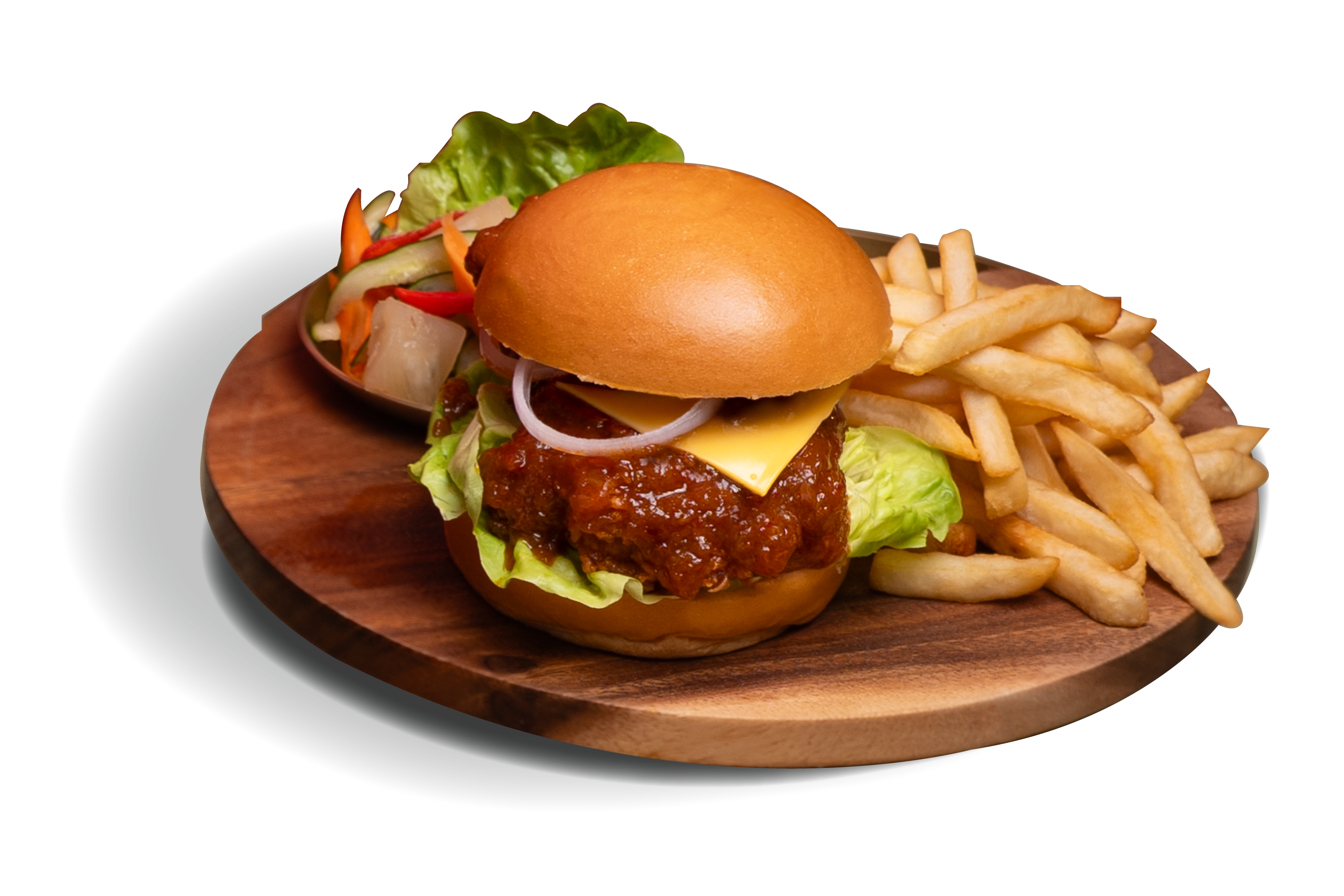 Local flavors, stacked the Swensen’s way. Crispy Ayam Masak Merah tucked in a soft brioche bun with fresh romaine and red onions. Served with fries and homemade achar for the perfect festive bite.